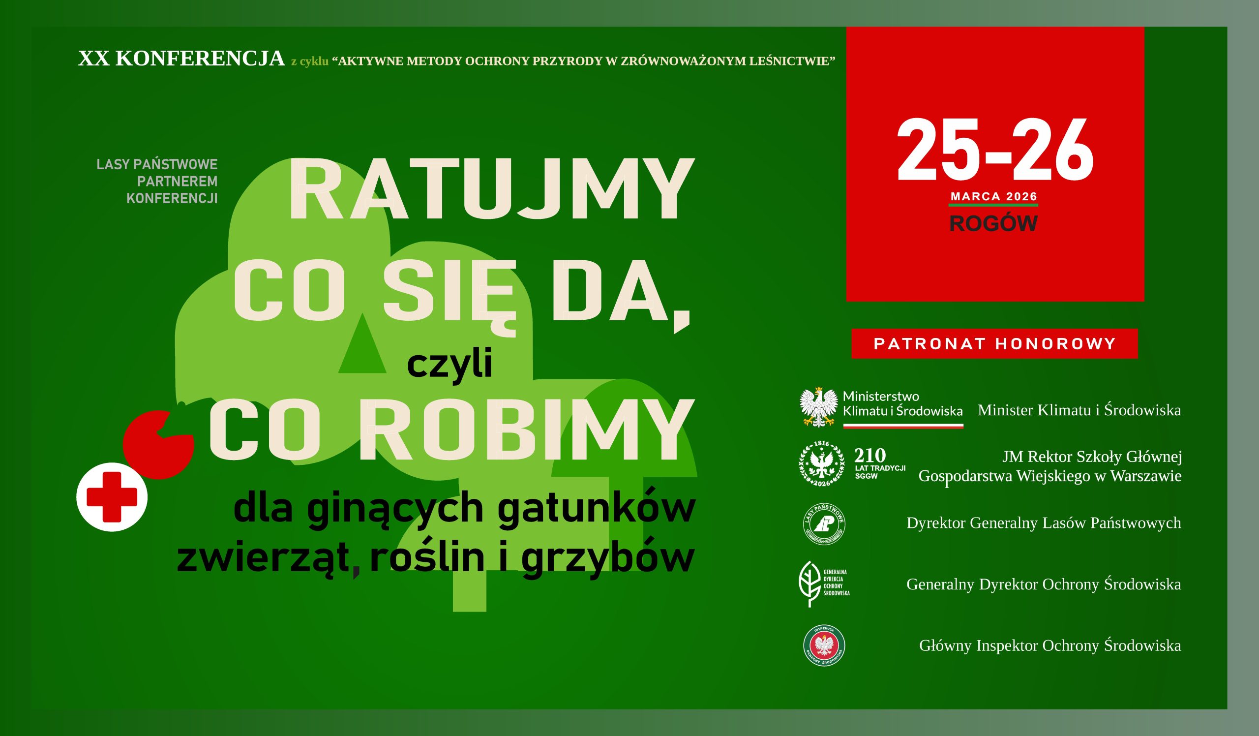 Konferencja poświęcona jest przeglądowi praktycznych działań mających na celu ratowanie zagrożonych gatunków zwierząt, roślin i grzybów w lasach. Koncentruje się na strategicznych i praktycznych aspektach ratowania bioróżnorodności w obliczu globalnego kryzysu. Ma charakter ogólnopolskiego forum wymiany doświadczeń i poglądów w tym zakresie, w celu wdrażania konkretnych rozwiązań ochronnych. Przeznaczona jest dla pracowników Lasów Państwowych, regionalnych dyrekcji ochrony środowiska, parków narodowych i krajobrazowych, środowisk naukowych, instytucji i urzędów publicznych, prywatnych i instytucjonalnych zarządców lasów, organizacji pozarządowych oraz wszystkich zainteresowanych ochroną przyrody w lasach.